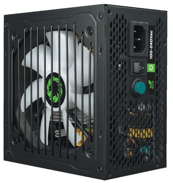 Мощность 500 Вт, стандарт ATX12V 2.3, PFC активный, система охлаждения 1 вентилятор, защита от перенапряжения, защита от перегрузки, защита от короткого замыкания, размеры 86x150x140 мм.