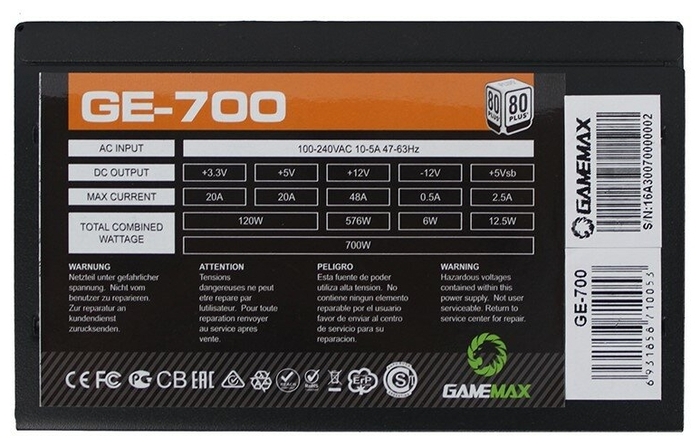 Блок питания ATX 700W GameMax GE-700