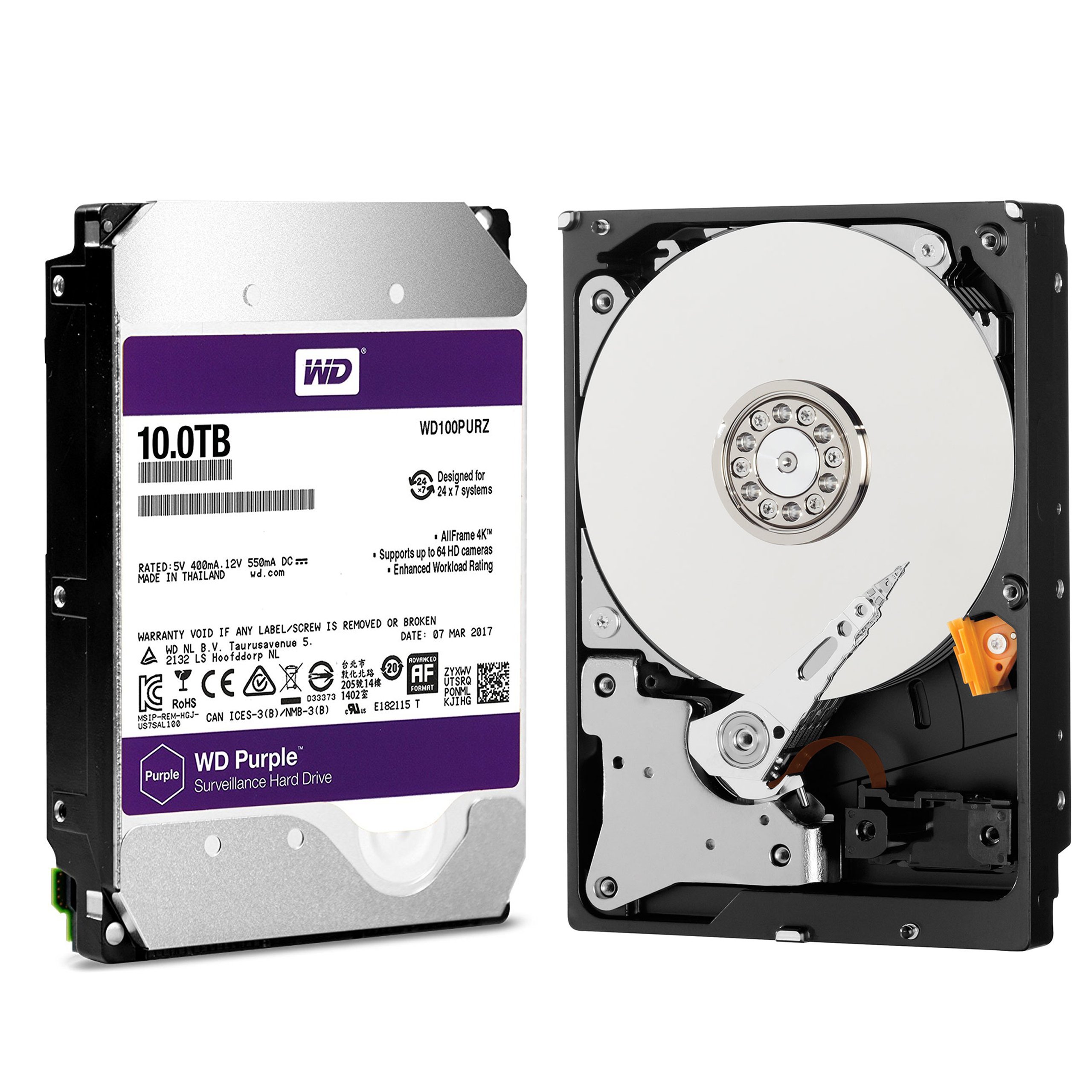 Жесткий диск WD Purple обладает довольно большим свободным объемом, составляющим 10 ТБ, поэтому на нем свободно могут поместиться видеофайлы большого объема (например, за несколько дней съемки). На представленном устройстве будет храниться видеоматериал, который оно получит с видеокамер.